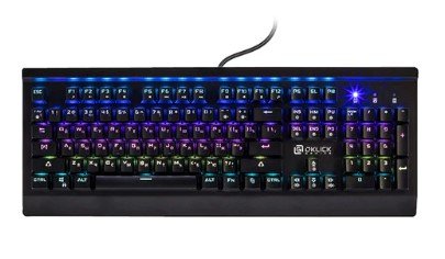 Drugi model iz Oklika u Kini jeftiniji je od našeg na tržištu. U principu, ima sve iste nadev kao jeftinije opcije, ali dolazi s šarenim RGB-pozadinskim osvjetljenjem. Standardno je spojen s USB kabelom i ima 2 klizne noge. Tipkovnica je opremljena pouzdanim mehaničkim prekidačima s jasnim pritiscima na tipke i dobrim učinkom, koji će osjetiti svakog novajlija igrača.