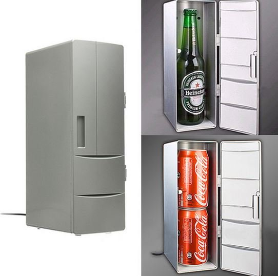 Prijenosni mini hladnjak je najbolji dar za osobu koja puno vremena provodi za stolom ili u automobilu. Hrani neobičan kućanski aparat preko USB priključka. Može se priključiti na računalo, adapter ili upaljač za cigarete. Uzima vrlo malo prostora. U njega se uklapaju samo dvije Pepsi limenke kapaciteta 0,33 ml. ili jednu bocu piva. Malo, ali piće će uvijek biti pri ruci!