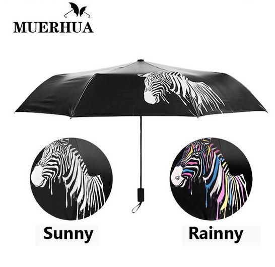 Kiša na ulici više nije strašna, ako postoji takav izvorni kišobran.Okvir je izrađen od visokokvalitetnih materijala, može izdržati teška opterećenja, ne boji se vjetra. Ali jedinstvenost kišobrana nije bitna. On zna kako promijeniti boju na kiši. Točnije, boja glavnog platna ostaje ista, ali crtež počinje dobivati obrise boja. Neobično i zanimljivo! Kapi vode, kao što su, ukrašavaju crno-bijeli crtež. Takav kameleon.