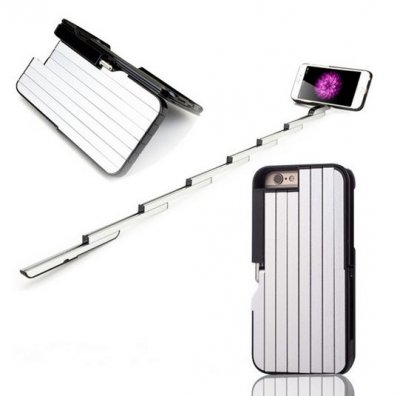 Ako ste već uspjeli dati djevojku iPhone, dodajte ga s neobičnim slučajem. Takav zaštitni odbojnik s trzajem zgloba pretvara se u štapić za selfie. Vrlo originalan pribor koji odgovara najpopularnijim IPhone modelima s dijagonalom zaslona od 4,7 i 5,5 inča. Izvana izgleda kao normalan slučaj, osim što povećana debljina stražnjeg zida ukazuje na prisutnost skrivenog dodatka. IPhone fanovi će definitivno svidjeti ovaj dar.