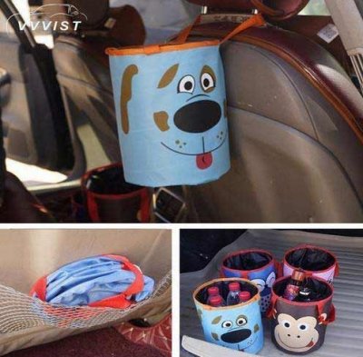Neobičan koš za smeće izrađen je u obliku kašike. Može se koristiti za skupljanje smeća i za spremanje potrebnih stvari. Pričvršćena košara na stražnju stranu sjedala. Kada se sklopi, praktički ne zauzima prostor, lako se uklapa u bilo koji džep vrata automobila. Na Aliexpress Expressu se višenamjenska kanta prodaje u nekoliko izvedbi. Šarene crteže, oni vole djecu. Tkanina je izdržljiva, izvedba je izvrsna.