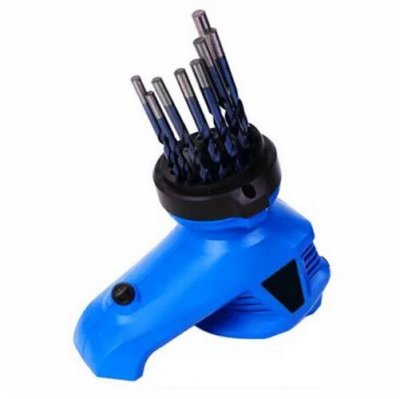 Ovaj model nema motor. To je uređaj za izravnavanje istrošenih rubova svrdla promjera 2–12,5 mm. Princip rada uređaja je najjednostavniji - plastični dio mlaznice je instaliran na ulošku električne bušilice. Nakon uključivanja motora, uložak počinje okretati brusni kotač mlaznice. Zahvaljujući tome, naoštrena bušilica dodiruje brusni kamen pod pravim kutom. Model ima 3 utora različitih veličina za učvršćivanje svrdla. Naravno, kvaliteta takvog izoštravanja nije idealna, ali se pokazalo da je vrlo korisna stvar za kućne majstore.