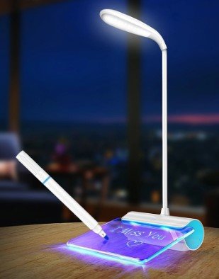 Ovaj uređaj može se predstaviti vašoj voljenoj osobi, djevojci ili članu obitelji. Bilješke s ugodnim riječima kao apsolutno svima.U budućnosti, lampu možete koristiti kao podsjetnik. Vrlo je zgodno ujutro čitati važne informacije o stolnoj svjetiljci. Nedostaci uključuju malu veličinu uređaja (visina 30 cm, širina - 14 cm).
