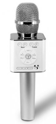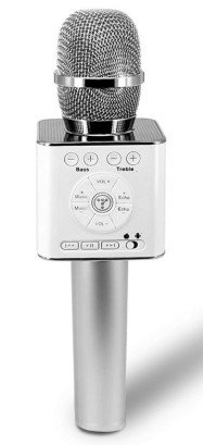 Bežični mikrofon, ugrađeni zvučnik. Snima signal na udaljenosti do 10 m. Postoji jedinstveni sustav za promjenu glasa, jeka i drugi izvorni efekti.Zahvaljujući smanjenju šuma na tri razine, zvuk je vrlo čist. Svaki mikrofon ima upravljačku ploču koja pruža potpunu kontrolu nad zvukom. S pametnog telefona ili tableta možete snimati glasovne, melodije zvona. U kutiji se nalazi pretinac za memorijsku karticu, priključak za USB i za slušalice.