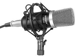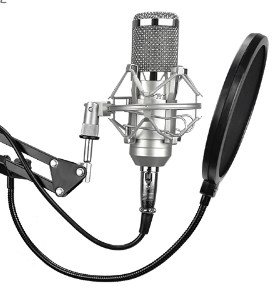 Ovaj model će odgovarati i ljubiteljima karaoka i onima koji žele pronaći profesionalni studijski mikrofon. Povezuje se s bilo kojim uređajem putem standardnog kabela s 3,5 mm priključkom. Komplet također uključuje opremu (zvučnu karticu), stalak i pop filter. Zbog toga je ploča visoke kvalitete, bez ikakve buke. Stalak je dovoljno jak, može se prilagoditi.Tijelo i rešetka izrađeni su od metala. U pregledima korisnici bilježe visoku kvalitetu izrade, čvrstoću materijala. Možete odabrati jednu od dvije boje - srebrnu ili crnu sa zlatom.