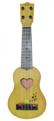 Interes za glazbu treba poticati iz djetinjstva, a miniaturna gitara s AliExpressom će vam pomoći. Ima samo četiri žice, ali to će biti sasvim dovoljno za bebe. Svi dijelovi instrumenta izrađeni su od plastike, napetost žica se može podesiti.