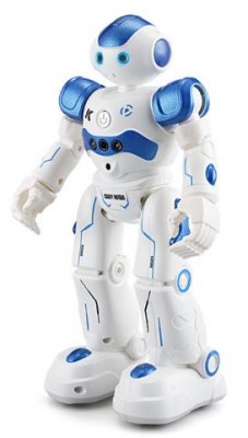 Još jedna kul opcija dar je robot s AliExpress. Kreta se duž bilo kakve putanje zbog kvalitetnih kotača na svojim nogama. Također, igračka pjeva i pleše, odgovara na geste. Potrebno je oko dva sata da se potpuno napuni (putem USB-a), a zatim se s robotom možete igrati do 60 minuta.