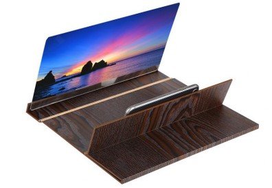 Zaslon za povećavanje mobilnih uređaja povećat će prikaz nekoliko puta bez gubitka kvalitete. Sada možete ugodno gledati filmove, razgovarati putem Skypea, čitati knjige ili igrati igre bez oštećenja vida. Nema zvučnika i punjača, što ne čudi jer je materijal izvedbe drvo.