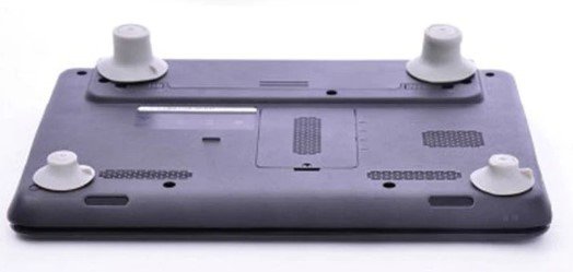 Komplet sadrži 4 noge - 2 na prednjoj i donjoj strani prijenosnog računala. Oni koji su veći su pričvršćeni na stražnjoj strani i kratki na prednjoj strani. Izrađena je od jake sive plastike. Ne preporučuje se stalno isključivanje s uređaja jer se točke pričvršćenja brzo istroše.