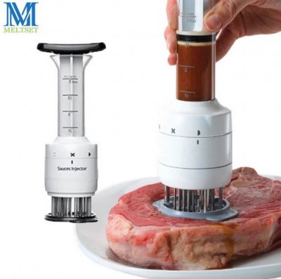 Takav koristan alat u kuhinji zamijenit će čekić sjeckalice i štrcaljku za mariniranje mesa. Iglice uništavaju vezivno tkivo, a marinada koja pada u debljinu vlakana brzo čini meso sočnim i mekim. Vrijeme dekapanja se smanjuje nekoliko puta. Drška je udobna, ne klizi iz ruku. Tekućina iz štrcaljke se ne prolije i ne prska. Dubina prodora igala može se podesiti. Stvar je prikladna za korištenje, može se prati u perilici posuđa.