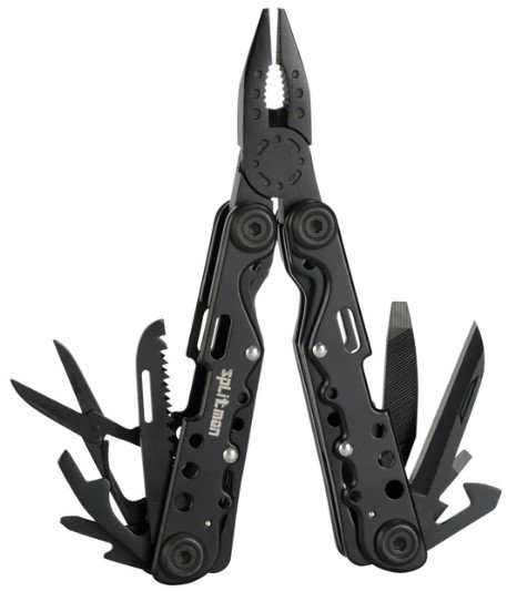 Multitools iz Splitman izgledaju solidno, to su uređaji u punoj dužini s vrlo velikom težinom. Model 35B teži oko 350 grama, izrađen je od krom vanadija, možete odabrati alat sa srebrnom, mat ili sjajnom crnom završnom obradom. Njegova visina kada se rasklopi je 15 cm (kada je presavijena oko 10 cm), unutar osi kliješta nalazi se opruga. Serija alata je standardna: nekoliko noževa, odvijač, pila za nokte i otvarači za boce za različite boce.