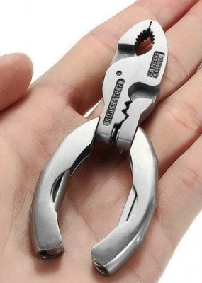 Cijeli se alat lako uklapa u dlan (duljina u rasklopljenom obliku nije veća od 10 cm), lako se može fiksirati pomoću prstena za ključeve. U recenzijama pišu da je takav džepni multitool savršen za obavljanje manjeg posla u uredu i kod kuće. Možete ga uzeti i pješačiti u prirodi, ali za ozbiljne svrhe bolje je kupiti uređaj punog formata.