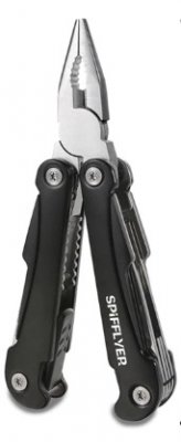 Ovaj multitool izgleda čvrsto, izdržljiv je i uredan. Za proizvodnju SPIFFLYER-a korišten je nehrđajući čelik 420. Set sadrži takve alate: tri odvijača, pilicu za nokte, otvarač za boce, dva noža različitih veličina, kliješta i kliješta. Na uređaju postoje blokatori koji olakšavaju korištenje početnika. Potrebno je samo pritisnuti gumb za pristup određenim bitovima. To je vrlo pogodno, smanjuje rizik od ozljeda uslijed oštrih noževa.