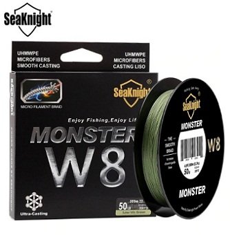 MONSTER W8 - stariji model već spomenut u našem pregledu tvrtke SeaKnight. To je pletena žica sa 8 žica koja može izdržati težinu od 6 kg (pri najtanjem promjera) do 45 kg. Budući da je jedan od najpopularnijih pletenica na AliExpress-u, MONSTER W8 prošao je veliki broj testova, kako od običnih kupaca, tako i od blogera - često se radi kako bi se dio sredstava za kupnju vratio (ako rezultati testa pokazuju odstupanje od navedenih karakteristika) , Unatoč tome, proizvod ima veliki broj pozitivnih recenzija, što ukazuje na visoku kvalitetu pletenice.