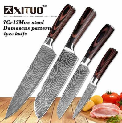 Ovi noževi mogu se nazvati najuspješnijim kineskim nasljednicima samurajskih mačeva. Naziv modela pokazuje da su izrađeni od višeslojnog damaska čelika. Zapravo, crtež na oštrici nije legendarna "slojevita torta" različitih vrsta materijala, nego lasersko graviranje, neka vrsta imitacije. Ali takav marketinški potez ne umanjuje najbolje kvalitete kuhinjskih noževa. Xituo. Izgledaju sjajno, a funkcionalnost je vrlo dobra.