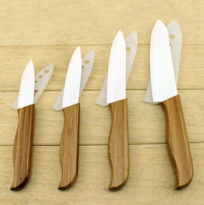 Čvrste dimenzije kuhinjskih noževa ne odgovaraju uvijek domaćini. Ako trebate set malih, ali vrlo udobnih noževa, pogledajte ovu keramiku s bambusovim ručkama. U setu od 4 noža veličine 3/4/5/6 inča. To su najpopularniji kuhinjski alati u svakodnevnom životu.Dolaze iz AliExpress-a u kvalitetnim plastičnim maskama. Prodavatelj ih dobro pakira, pri transportu se isključuje šteta.