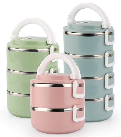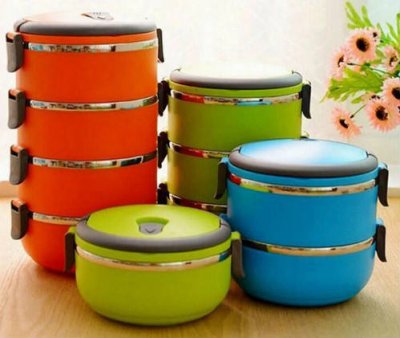 Ove svijetle posude dostupne su u nekoliko verzija odjednom: možete odabrati boju (plavu, zelenu ili narančastu) i broj slojeva (od 1 do 4). Za razliku od klasičnih uređaja s Aliexpressom, U-miss ne zagrijava hranu u punom smislu te riječi. Jednostavno dugo zadržava temperaturu. Svaki sloj lonca izrađen je od nehrđajućeg čelika s dodatkom plastike, poklopac je zatvoren.