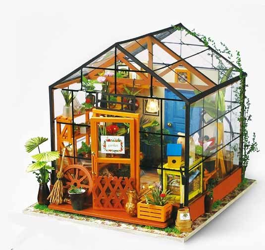 Tvrtka predstavlja vrlo zanimljivu zbirku kuća za lutke. Robotime. Dostupno za naručivanje takvih tematskih kompleta: "Green House Katie", "Jason's Kitchen", "Miller Flower House" i najjeftiniji set pod nazivom "Happy Camp". Sve serije se vrlo dobro prodaju na AliExpress-u. Ovdje je sve što u sadašnjem stanu - biljke u saksiji, kućni tekstil, slike, čaj i kava te razni namještaj. Dizajniran u seoskom stilu. Kuće izgledaju udobno i slatko. Da, i kvaliteta dijelova ovdje je jedna od najboljih.