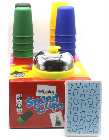 Speed Cups je zabavna igra brzine reakcije i pozornosti. Njegovo značenje je da obojene šalice postavite u pravom redu što je brže moguće, a zatim pozvonite. Unatoč jednostavnosti, ova igra na ploči postala je pravi hit među studentima i odraslima. Često je vode sa sobom na zabave ili planinarske izlete. Možete odabrati verziju za 2 ili 4 igrača. Prošireni set uključuje 20 šalica različitih boja, 24 karte sa slikama, zvono i 4 kopije pravila.