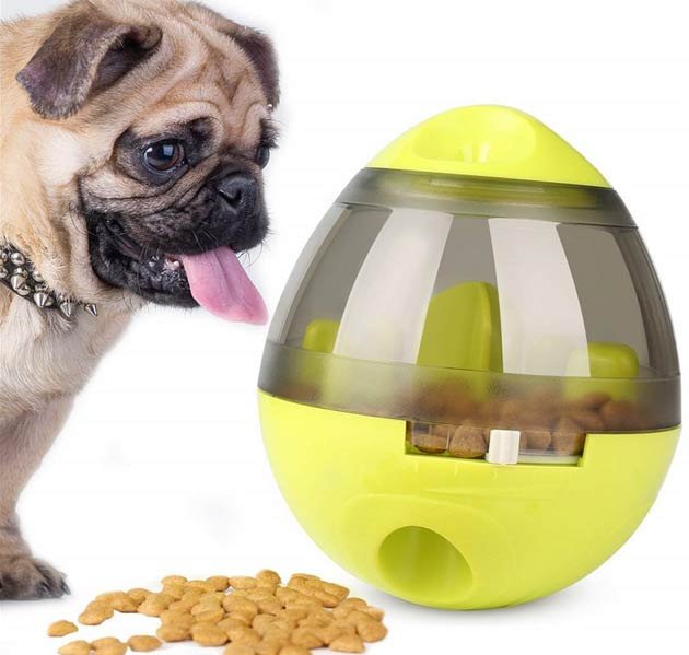 Ova igračka s Aliexpressom tretira interaktivne hranilice. U stanju je uzeti vašeg ljubimca duže vrijeme, jer se poziva na najosnovniji instinkt - hranu. Napravio je nešto u obliku sklopive lopte. Plastična posuda ispunjena je vašom omiljenom suhom hranom. U procesu dobivanja delicija životinje pomiču igračku, pokušavajući nagnuti loptu pod pravim kutom. Hrana se izlije malim porcijama. Neka vrsta okupacione terapije u kojoj se ne dosađuju mladi i stariji psi. Igra s ovom dodatnom opremom je sigurna i ne zahtijeva kontrolu od strane vlasnika. Igračka se vrlo lako čisti i rastavlja.