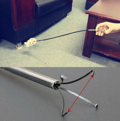 Ovdje je najbolje fleksibilno proširenje s Aliexpress s vrlo prianjajućim nogama. Kada pritisnete gumb, otvaraju se. Vrijedno je otpustiti ovaj gumb, a pinceta čvrsto zgrabi male predmete. Ekstender tanak i fleksibilan, odlično radi čak i na najnepristupačnijim mjestima. On ne pušta predmete bilo kojeg oblika iz svojih pipaka. Štoviše, za razliku od magneta, može se koristiti za dobivanje nemetalnih stvari. Takva korisna stvar je korisna i kod kuće iu garaži.