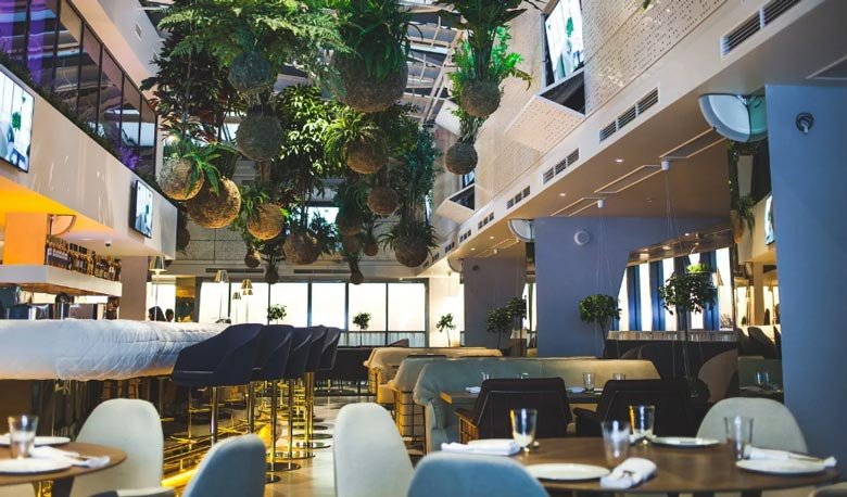 Posebne kategorije su koktel i vinska karta. Tu je i poseban dječji jelovnik s zanimljivom prezentacijom. Možete kušati jela različitih svjetskih kuhinja: japanske, talijanske, američke itd. Prekrasna vanjska terasa bit će odlično mjesto za druženje s prijateljima i romantičnu večeru. Prednosti: izvrsna lokacija, vrhunski namještaj, otvorena terasa, veliki kapacitet (400 gostiju), besplatne recenzije, prekrasan pogled, ukusna kuhinja.