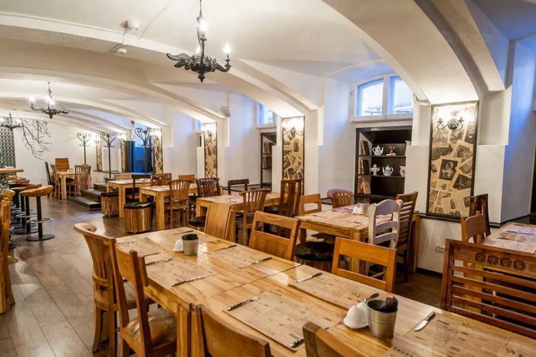 Interijer je izrađen u tradicionalnom ruskom stilu, ali nadopunjen zanimljivim elementima. Možete probati paštetu s marmeladom od luka, gazpacho od mrkve i strachitella s sjemenkama suncokreta, kašu od sjekire, odreske, pizzu s jedinstvenim punjenjem i još mnogo toga. Svako jelo je umjetničko djelo. Pros: inovativni recepti, obnovljivi meni, svježi, kvalitetni proizvodi, ugodna atmosfera, kultno mjesto, poznati vlasnik. Cons: visoke cijene.