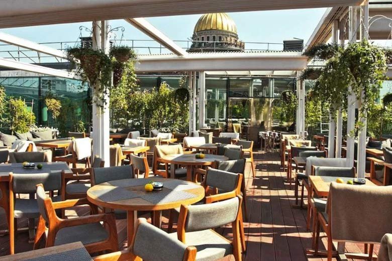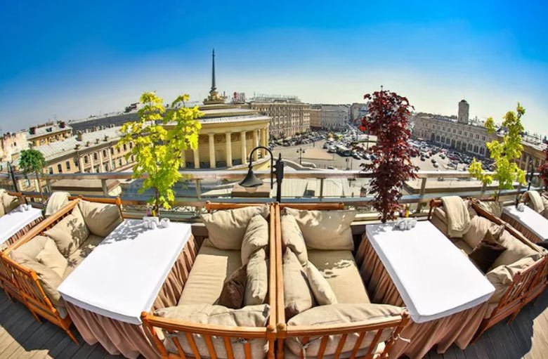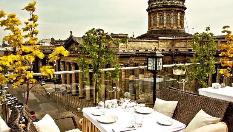 Na površini od 350 četvornih metara. m. Pravo na krovu jedne od najviših kuća u Petersburgu nalazi se jedinstveni restoran s terasom s jedinstvenim pogledom na grad. Odavde možete vidjeti Nevsky Prospect, Kazansky Obor, Crkvu Spasitelja na Krvi itd. Mirna atmosfera raspolaže odmaranjem i pogledom na mir. Sjedeći na udobnom stolu, možete gledati pripremu odabranih jela u otvorenoj kuhinji. Gosti mogu naručiti japanske role, juhe s plodovima mora ili meso, sočne odreske od najboljeg mesa, patke, jamona, domaćeg džema itd.