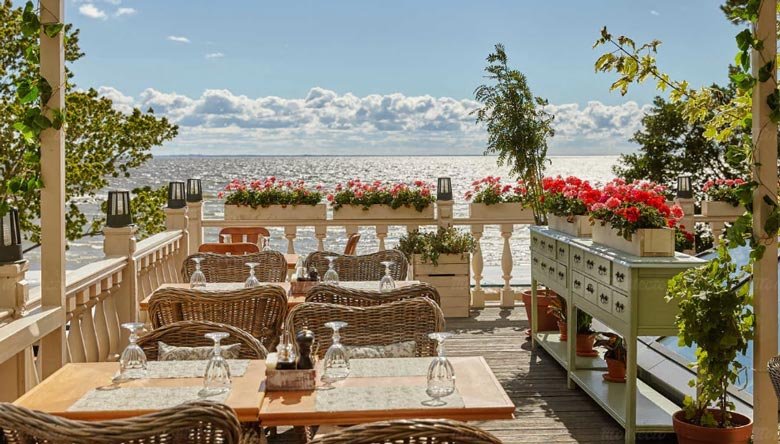 U toploj sezoni, restoran vas poziva na ukusan ručak u stilu švedskog stola. Ovdje možete probati takva neobična jela kao što su punjene rolnice s rakovima, patke s trešnjama, mango mousse, dimljena slanina s češnjakom itd. Sve je napravljeno od svježih poljoprivrednih proizvoda, a poslužuje se vrlo estetski. Prednosti: prekrasan pogled, odlično mjesto za obiteljski odmor, dječja zabava, vrlo ukusna hrana, izuzetna okolina, ljetne terase, svježi zrak. Cons: visoka cijena.