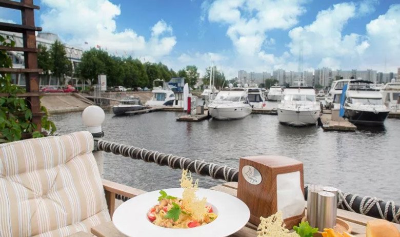 Profesionalni kuhar nudi probati svježe kamenice, kamčatski rakovac, ruski Olivier u autorovoj hrani, tikvice, jesetrinu, Napoleonovu krušku, talijansku fokaču, bruskete s šunkom, 5 vrsta carpaccioa. Ovdje održavaju koncerte vrhunskih slavnih osoba.Možete uživati u ukusnoj večeri uz živu glazbu. Glavne prednosti: odličan pogled, vrhunska usluga, elegantan interijer, prirodni materijali, kvalitetna jela, odličan jelovnik, pozitivne recenzije gostiju, večeri uz živu glazbu.