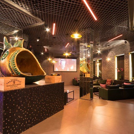 To je vrlo atmosfersko i konceptualno mjesto. Dizajn prostorije napravljen je u orijentalnom stilu, a glavni eksponat ustanove je ogromna riba, koja je ujedno postala i simbol nargile. U ustanovi možete isprobati razne mješavine duhana, uključujući i autorsku mješavinu iskusnih proizvođača nargile. Ovdje će vam se ponuditi ne samo nargila ili parni koktel, već i cijeli izbornik u nargilu s jelima raznih svjetskih kuhinja i bar u kojem se nalazi piće za svačiji ukus. Postoji veliki izbor čaja od jednostavnih do najsofisticiranijih sorti. Slatki zubi također će pronaći što odabrati u dijelu deserta izbornika.