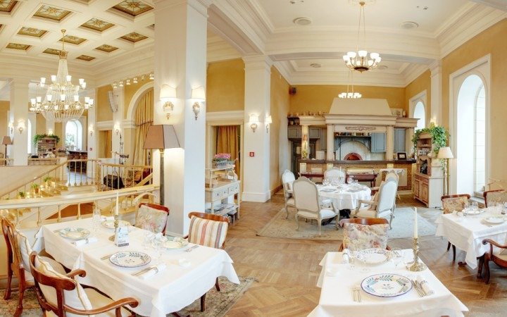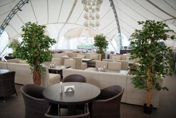 U restoranu se nalaze tri dvorane - male su, ali ugodan svijetli interijer i skladan raspored stolova omogućuju udobno smještaj više od 100 posjetitelja. Tu je i odvojena soba za 20 osoba s audio sustavom i plesnim podijem, gdje se pozivaju na proslavu rođendana za djecu ili odrasle. Bogatstvo zelenila i mekih kauča donose domaći komfor, dok slike i mramorna poprsja daju osjećaj iznimnih događaja. No, najbolje je provesti vrijeme na šarmantnoj ljetnoj terasi - to je ono što iskusni posjetitelji kažu u recenzijama.