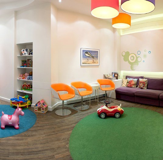 Klinika je vrlo svijetla. Tu je i igralište za tehnike čekanja i prilagodbe. Ormari su opremljeni televizorima koji emitiraju pacijentove omiljene karikature. Za najmanji liječnici ne obavljaju medicinske postupke, a "stavljaju pahulje", "istjeraju karijesna čudovišta s pritiskom vode i protokom čarobnog zraka" i još mnogo toga. Dovedite djecu na kliniku i uvjerite se da je ona doista jedna od najboljih.