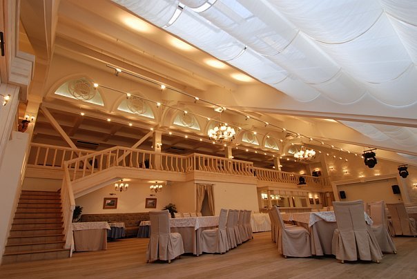 Ako sanjate o kraljevskom vjenčanju, onda odaberite dvoranu "Suvereni" za dio banketa. Vanjski izgled zgrade i unutrašnjost interijera daju dojam prave palače. Nudi impresivan izbor kuhinja - rusku, armensku, židovsku, indijsku pa čak i gruzijsku. Odmah iz velike dvorane gosti mogu otići na otvorenu verandu, gdje obično imaju odvojene prostore za opuštanje i pušenje.Na drugom katu kompleksa nalaze se 2 VIP sobe u kojima mladenci mogu odsjesti.