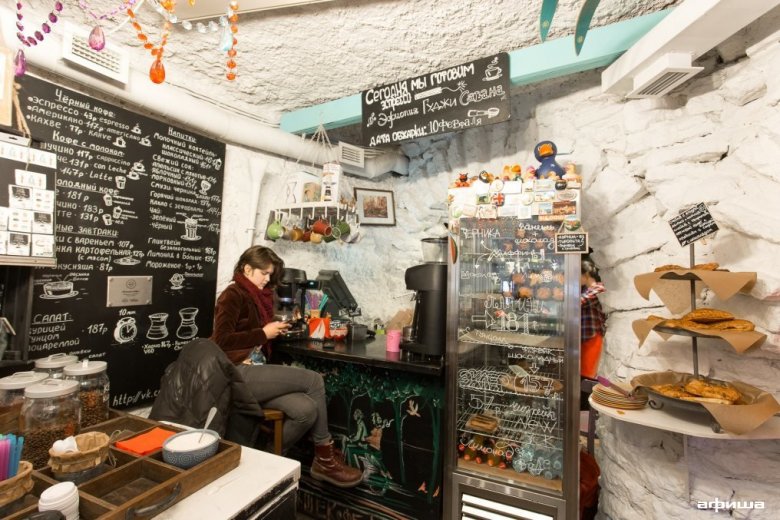 Minijaturna, ali ugodna kavana Cup In Cup i Cofico nudi uživanje u najboljoj kavi u St. Petersburgu po razumnoj cijeni. Cijela paleta pića, od espressa s toplim mlijekom i završava s banana raff, će vas koštati minimalni iznos - od 49 do 160 rubalja. Čajna kartica ovdje nije niža od one kave - od krkavine i đumbira do mlijeka i meda, a cijene su iste - oko 100 rubalja. za šalicu.