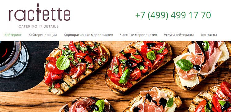 Raclette je jedna od rijetkih jeftinih ugostiteljskih tvrtki u Moskvi s velikim jelovnikom. Tvrtka služi malim i srednjim organizacijama i uredima, a za svaku narudžbu izrađuje se jedinstveni plan. Raclette organizira domjenke, bankete i roštilj za poslovne i privatne klijente, stranica daje detaljne informacije o svakoj usluzi i daje približne cijene. Posebnost tvrtke je autorov gruzijski jelovnik, razvijen uzimajući u obzir povijesne značajke ove kuhinje.