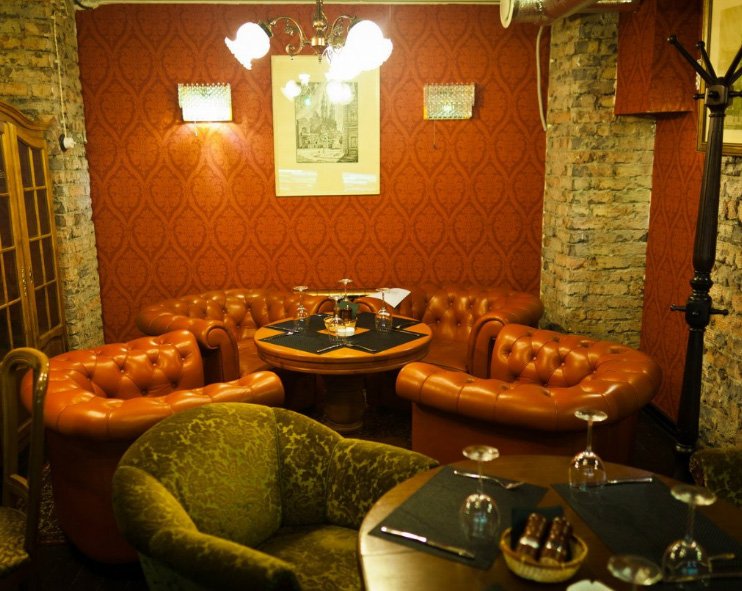 Otvara top tri knjižnice s neobičnim dizajnom i pristojnom karticom. Restoran je podijeljen na zone: jedna glasna za tvrtke, druga - za mirna okupljanja. Dizajn svake sobe je individualan. Najzanimljivija knjižnica s policama, zidovima i metalnim elementima. Status ustanove podsjeća na elitno alkoholno piće i korisne konobare. Govoreći o piću, gostima se nudi više od 100 vrsta vina i obrta piva. U večernjim satima održavaju se predstave, nastupaju glazbene skupine.