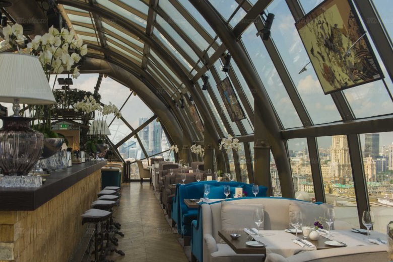 Vikendom poznati DJ-i igraju u restoranu Sky Lounge, ali ovdje nikad nije previše bučno. Atmosferu mjesta nadopunjuje elegantna dvorana na čijim se rubovima nalaze balkoni. Nude nevjerojatne panoramske poglede Moskve koja se prostire dolje s neprekidnim užurbanošću i pokretima. Važno pravilo: prilikom rezerviranja stola unaprijed rezervirajte da se nalazi uz prozor. Još jedna prednost restorana Sky Lounge je izvrsna vinska karta i veliki izbor elitnih sorti crnog i zelenog čaja. Nažalost, to nije bez nedostataka: mnogi posjetitelji ističu nisku razinu usluge za instituciju ove razine.