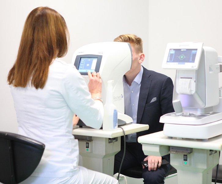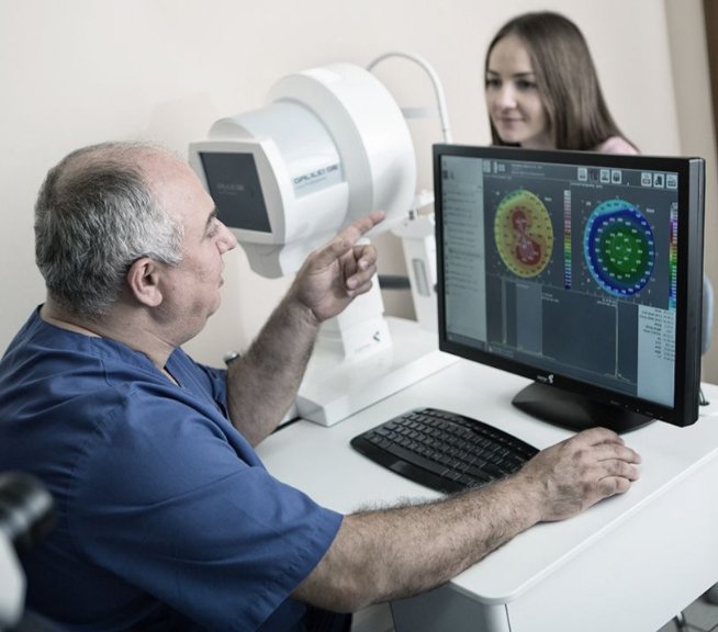 Svaki posjet je popraćen kratkim pregledom, tijekom kojeg se vizija provjerava na više uređaja. Ako je potrebno, liječnik će pokupiti naočale. Tijekom inicijalne dijagnostike specijalist daje objašnjenja za pripremu za operaciju ili nudi alternativne opcije. Međutim, neki se žale na dugo čekanje i zaboravljanje administratora, što je neprihvatljivo za luksuznu ustanovu.