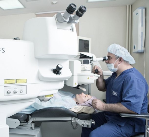 EMC je jedna od najvećih klinika u Moskvi: ovdje radi 600 liječnika iz Europe i Rusije. Laserska korekcija je osigurana u skladu s međunarodnim protokolima. Centar je otvoren 24 sata dnevno i bavi se hitnim slučajevima. Tu je i ured za djecu s odgovarajućom opremom i kirurškom bolnicom. Liječnici rade na Intralase i VISX Star S4 IR uređajima. Zahvaljujući ovim uređajima, tretira se mijopija do 20 dioptrija.