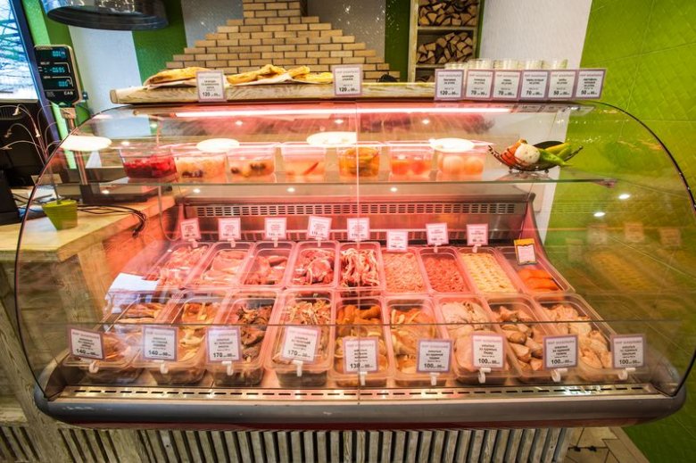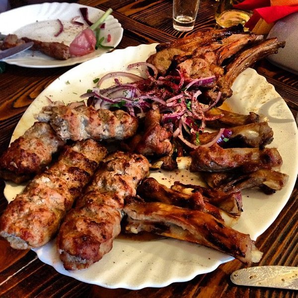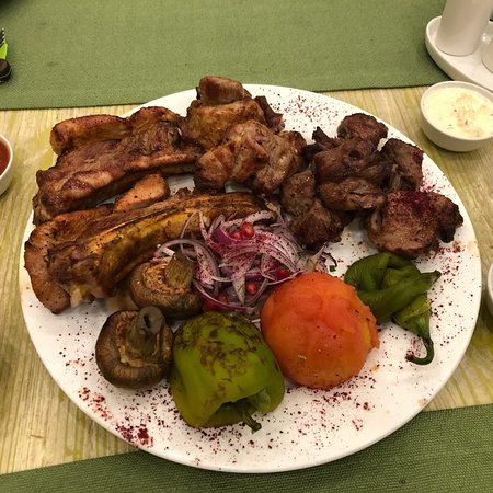 U jelovniku s roštiljem na raspolaganju su razna jela kavkaske kuhinje. Za kuhanje kebaba koristi se samo svježe meso, marinirano prema tradiciji autohtonih naroda Sjevernog Kavkaza. Profesionalci: non-stop rad, ugodna glazbena pratnja. Manjak: mali obroci, nisu dostupna sva jela navedena u izborniku.