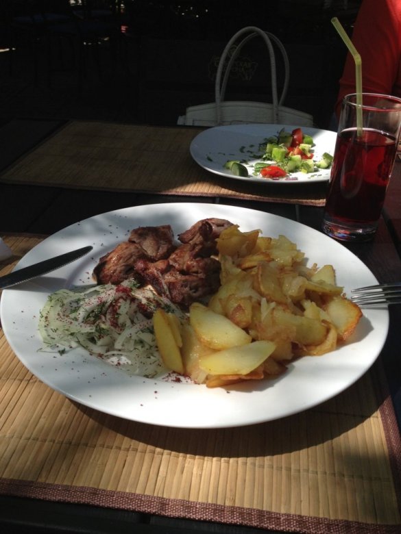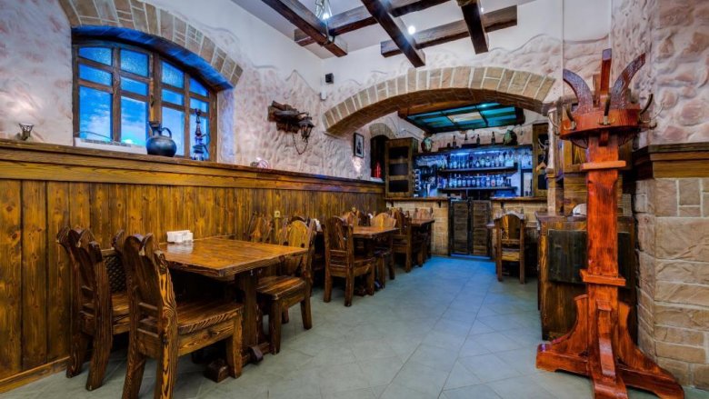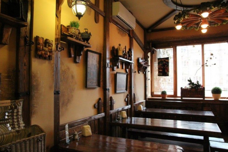 Ljeti se otvara terasa, ali ako želite, možete sjesti u sjenice. Kebabovi se kuhaju na otvorenoj vatri u dvorištu, tako da možete gledati proces. Izvrstan popis uključuje jaki alkohol, vino i domaće likere. Pros: odvojeni dječji meni, razne hladne i vruće grickalice, razne promocije. Minus-duge usluge.