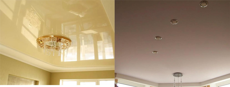 - Izgled. Filmski stropovi su sjajni, satenski ili mat, tekstura platnenih platna uvijek je mat.