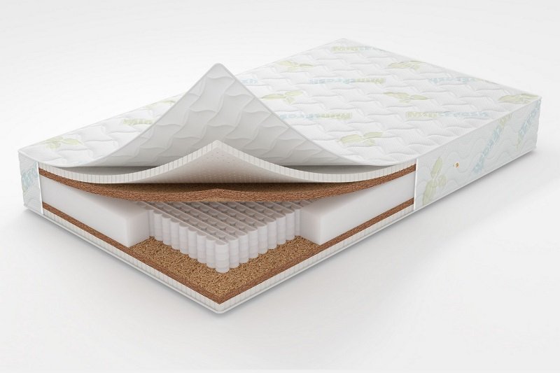 Kokosova kokos. Pruža optimalnu ravnotežu krutosti i udobnosti. Materijal ne ometa cirkulaciju zraka i tijekom vremena ne gubi svoj oblik. Većina proizvođača koristi koyru, prethodno obrađenu lateksom, za punjenje madraca.
