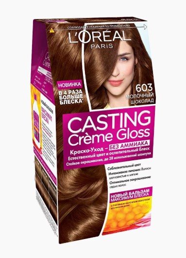 Široka paleta proizvoda omogućuje vam da odaberete boju koja zadovoljava individualne potrebe svake žene. Jedna od najpopularnijih štedljivih boja krema je linija Casting Creme Gloss. Proizvodi ove serije ne sadrže amonijak, već se kemijski aktivne tvari koriste kako bi se proces bojenja učinio bezopasnim za kosu i kožu. Kompoziciji nedostaje i vodikov peroksid koji često kvari strukturu kose. Osim toga, L'Oreal Casting obogaćen je posebnim matičnim mliječom koji potiče dubinsko hranjenje niti. Zbog toga kosa postaje meka, gipka i sjajna, zadržavajući svjetlinu i zasićenost boja nekoliko tjedana.