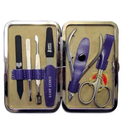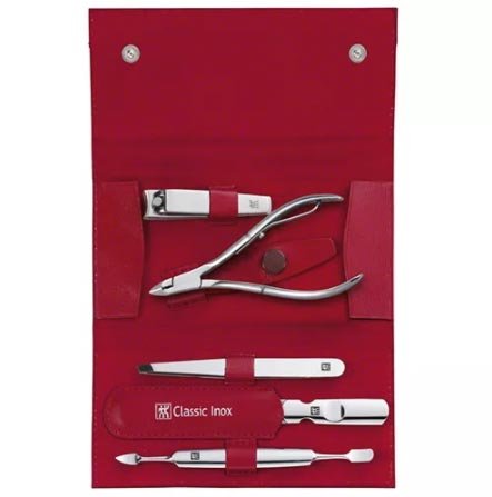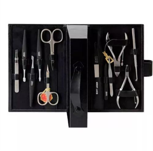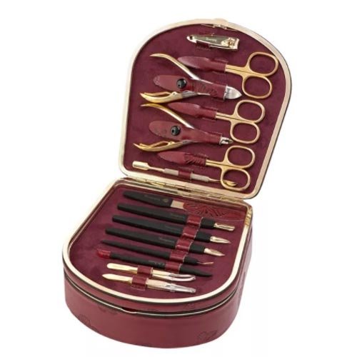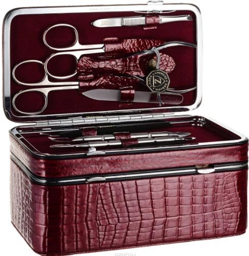 Vrhunski set marke Zwilling - najbolji dar. Kućišta su izrađena od prave kože ili aluminija, neki modeli imaju postolje od drva ili porculana. Unutar svakog manikirnog seta ukrašena je koža ili antilop različitih boja i Swarovski kamenčići.