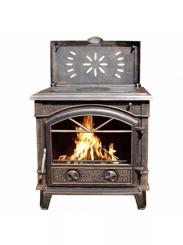 Prisutnost regulatora zraka omogućuje vam optimizaciju procesa izgaranja. Dimnjak se spaja iza peći i ne kvari izgled. Učinkovitost drvenog kamina je na razini od 80% i optimalno je prikladna za grijanje prostorija (kuća ili kućica) s volumenom ne većim od 200 m³. Podizanje ukrasne rešetke od lijevanog željeza u okomiti položaj, možete koristiti pećnicu za pripremu ili zagrijavanje hrane. S obzirom na pristupačne cijene i visoku kvalitetu kineskog željeza, modeli ove tvrtke su u potražnji među potrošačima.
