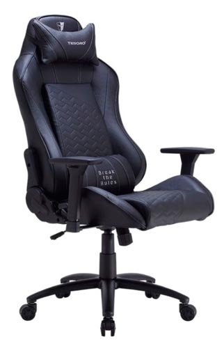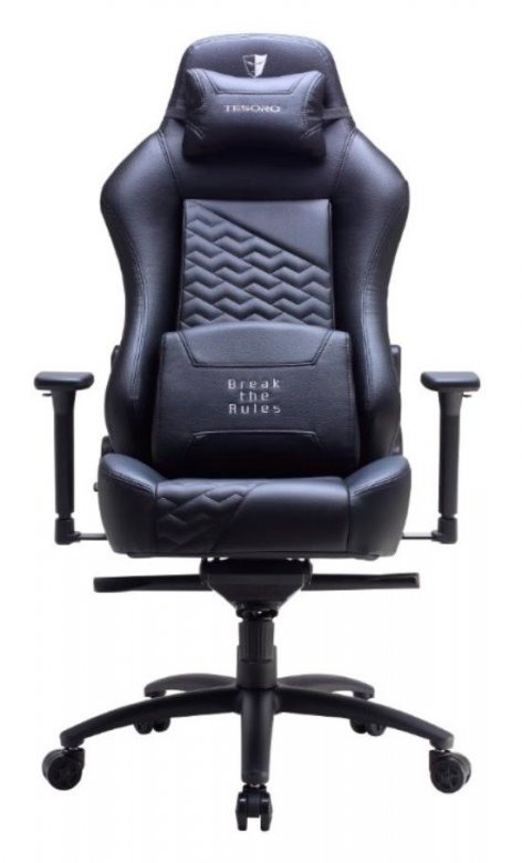 Drugo mjesto u kategoriji stolica za igre srednje klase još uvijek zauzima proizvođač perifernih uređaja za igre na sreću, koji nije jako popularan u našoj zemlji, TESORO. Amerikanci proizvode prilično suzdržan, kao i za gaming industriju, stolice.Ako izvučemo analogiju: natjecatelji su sjajni sportski automobili koji viču o svojoj prirodi, dok je TESORO skroman vanjski obiteljski sedan iz Njemačke ... ispod haube koja ima nevjerojatnu snagu. Oba modela proizvođača izrađena su u crnoj boji, iako postoje opcije s malom količinom crvenih ili bijelih elemenata - bez osnovica. Materijal - umjetna koža. Zbog punog oblika i korporativnog dizajna izgleda sjajno. Jastuci ispod donjeg dijela leđa i vrata također su masivni - oslanjajući se na njih, potpuno se opustite. Ostaje samo nagnuti leđa za 180 stupnjeva i možete spavati. Štoviše, dizajn omogućuje da to učinite - metal svugdje, težina stolice je 25 kg - nema sumnje u pouzdanost. Od zanimljivih značajki, napomenuti je napredni multiblock mehanizam kotrljanja - on je pouzdaniji i prilagodljiviji.