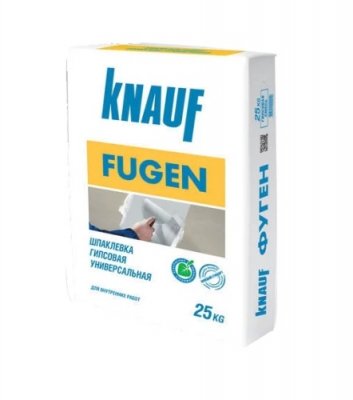 KNAUF Fugen kit se široko koristi. Izrađuje se na bazi gipsanog praha uz dodatak polimernih aditiva. Aditivi povećavaju elastičnost kitnog sloja, poboljšavaju prianjanje. Glavna svrha smjese - poravnanje zidova i stropova unutar zgrada, gdje je normalna razina vlažnosti. Budući da je gips higroskopan, ne preporuča se postavljanje podnih obloga u kupaonicama i kuhinjama. Kao dio nikakvih toksičnih spojeva, nakon sušenja, premaz ne puca zbog nedostatka skupljanja. Pomoću kitova možete izravnati ožbukane i betonske površine, brtvene spojeve u suhozidnim konstrukcijama, kao i otkloniti manje nedostatke i pukotine.