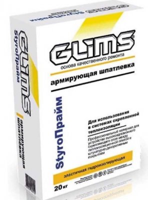 Početni kit GLIMS Styro Prime je posebno dizajniran za izravnavanje i učvršćivanje površine prije nanošenja dekorativnog premaza. Ova elastična smjesa tvori najjači sloj koji sprječava prodor vlage, uništavanje ili pucanje. Predstavljeni proizvod ima najbolje performanse i visoku otpornost na vodu, paru i najniže temperature, do -50 ° C. Zahvaljujući tome, GLIMS Styro Prime ima širok raspon primjena. Uz njegovu pomoć, možete zalijepiti izolaciju, bazen, zidove, fasade itd.